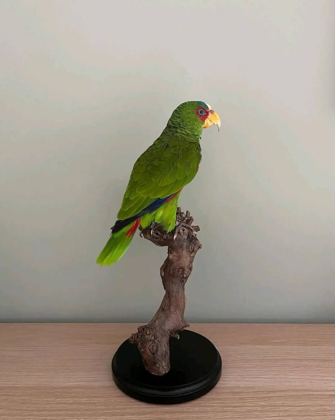 This 2-year-old White-Front Amazon parrot is fully grown, tamed, and accustomed to human interaction. The bird is healthy, active, and has developed a stable temperament, making it a great companion for both new and experienced owners.